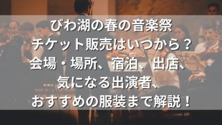 音楽イベント・フェスティバルびわ湖の春の音楽祭〜ウィーンの風〜2023開催! チケット販売はいつから?会場・場所や宿泊、出店、気になる出演者から、 おすすめの服装までお知らせします! この記事では「びわ湖の春の音楽祭〜ウィーンの風〜2023」のチケット販売はいつから開始なのか、会場・場所や宿泊、出店、気になる出演者やプログラム、 クラシックコンサートに行き慣れていない方には悩みどころになる、おすすめの服装までお知らせします!音楽イベント・フェスティバル